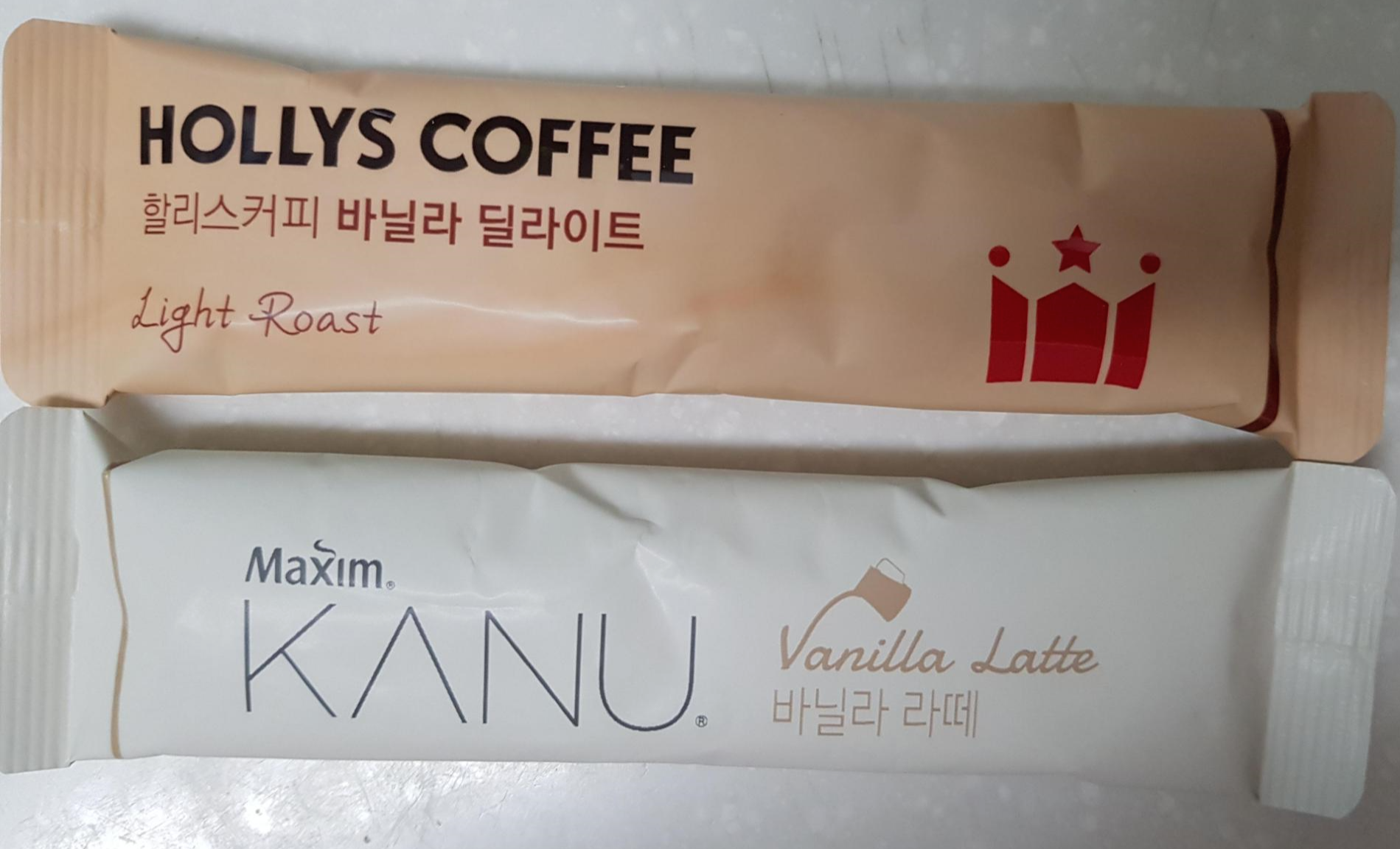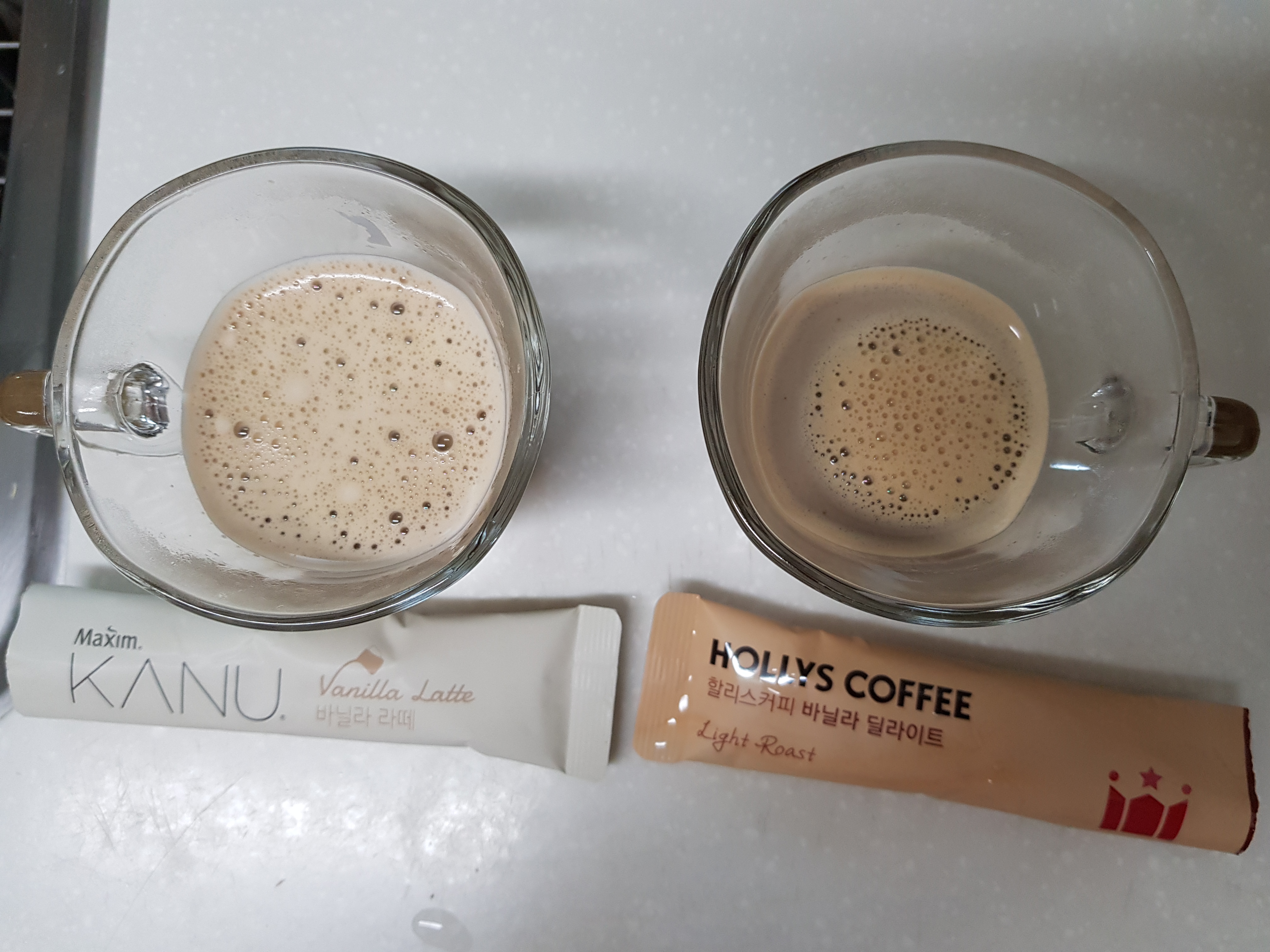 맛은 저의 평범한 미각으로는 둘다 믹스 커피 맛이고 둘다 달달하지만 약간씩 차이는 느껴졌습니다.